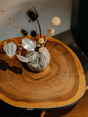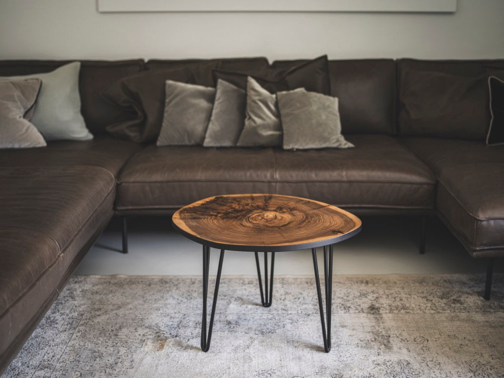 Der elegante Couchtisch wird aus Metall-Füßen und edlem Hirnholz gefertigt. Das hochqualitative und langlebige Möbelstück aus regionalen Rohstoffen, produziert in unserer Krispler Werkstatt erinnert an den Industrial-Style und verleiht jedem Wohnbereich einen besonderen Charme und erzielt einen echten Blickfang.