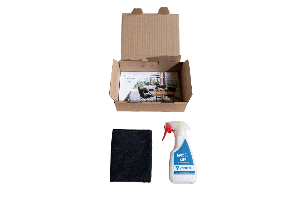 Anwendung: Möbel-Kur vor Gebrauch gut schütteln, auf ein fusselfreies Microfasertuch sprühen und die Fläche zügig damit abreiben. Bei Bedarf (z.B. bei stärkeren Verschmutzungen) den Vorgang wiederholen. Mit einem trockenen Microfasertuch nachreiben.